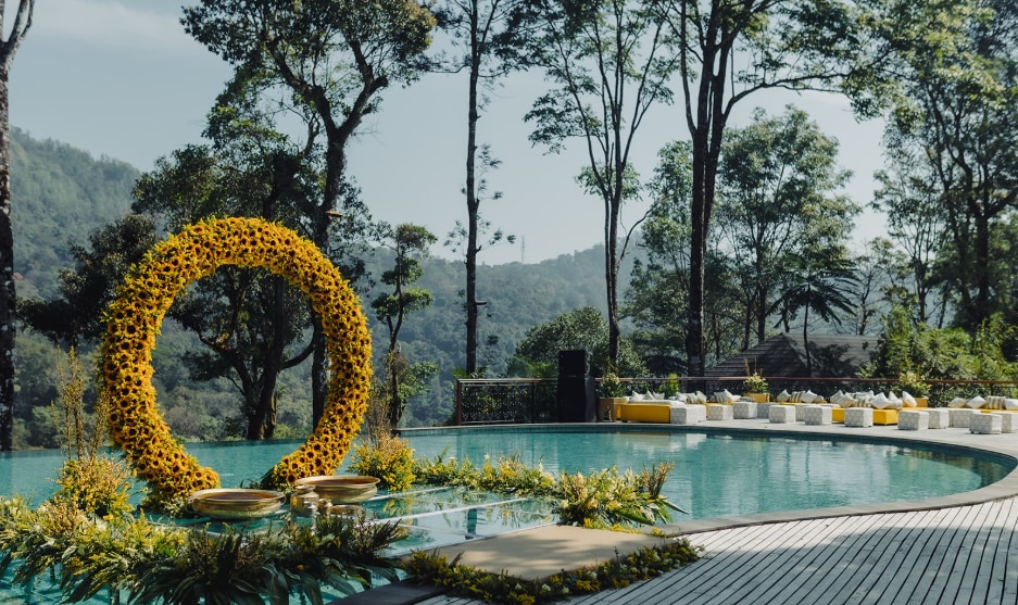 Surrounded by misty hills and coffee plantations, Coorg is perfect for couples who want a quiet, nature-led wedding. Intimate gatherings here feel more like a warm family retreat, with luxury resorts offering private spaces, scenic views, and a relaxed atmosphere that encourages unhurried, meaningful celebrations.