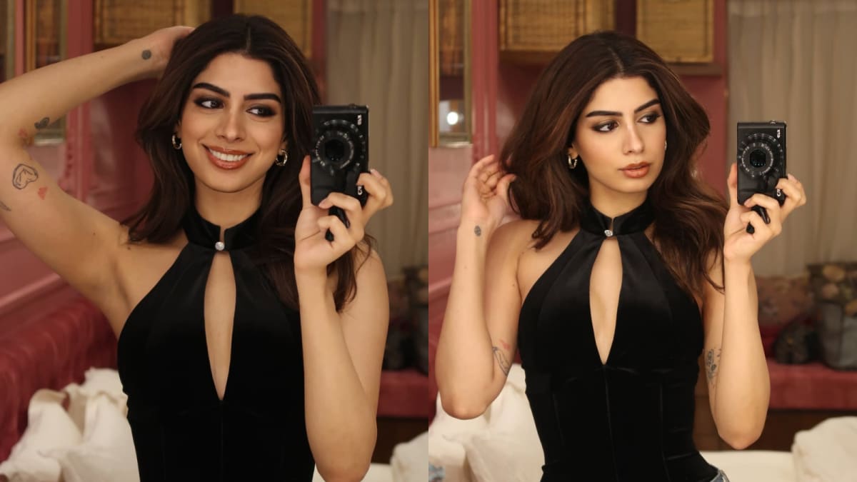 Providing a mix of elegance and edge, Khushi Kapoor picked a velvet halter neck top from the House of CB Zia, wearing which she indeed turned heads at the birthday bash. The curve-enhancing silhouettes, delicate cut-out details, lace-up back, and plush fabric offer all the styles you need to bring the drama this season and beyond.