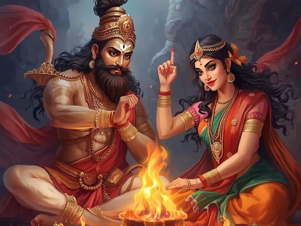 King Yuvanasva was married to Queen Gauri, but even after many years, they had no children. Like King Dasharatha, Yuvanasva performed a special ritual to have a child. Sage Chyavan organised an Ishti Yajna for him. After the year-long ritual, the sage prepared consecrated water for Queen Gauri to drink, ensuring she would conceive.