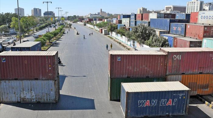 According to the traffic police, MT Khan Road has been closed with barriers and personnel in place to restrict movement. Containers have been placed on the PIDC Bridge, while the roads leading to Jinnah Bridge and Mai Kolachi have also been blocked.