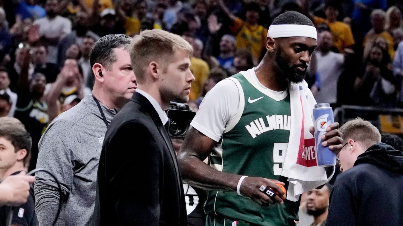 INDIANAPOLIS — With the Bucks already missing their top two scorers Sunday night against the Pacers, Milwaukee forward Bobby Portis was ejected early in Game 4 after a scuffle with Indiana guard Andrew Nembhard.