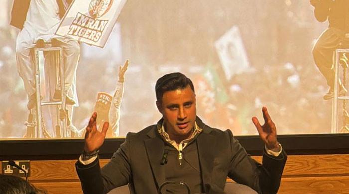 PTI leader and former minister of overseas Pakistanis Zulfi Bukhari speaking at Oxford Majlis in UK’s Oxford University on January 25, 2024. — X/@sayedzbukhari